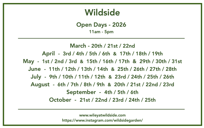 Wildside Open Days correspond in an average year with the main seasonal peaks of flowering: